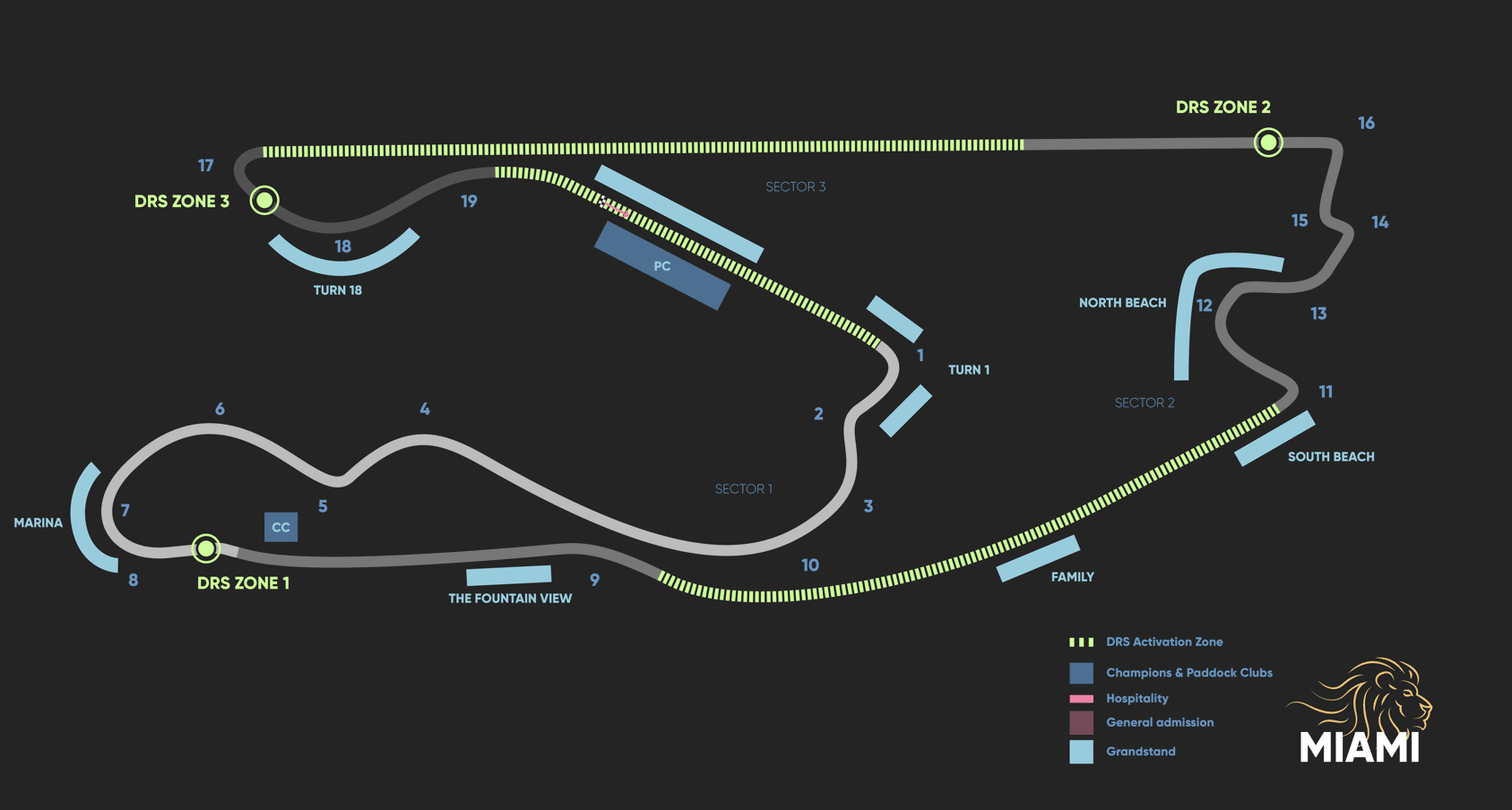Curious about the details of the Miami International Autodrome? Download our free Circuit Guide for Miami. In this guide, you’ll see how the circuit is laid out. Additionally, you’ll get tips about the facilities around the race track. This way, you can perfectly prepare for your trip to Miami!