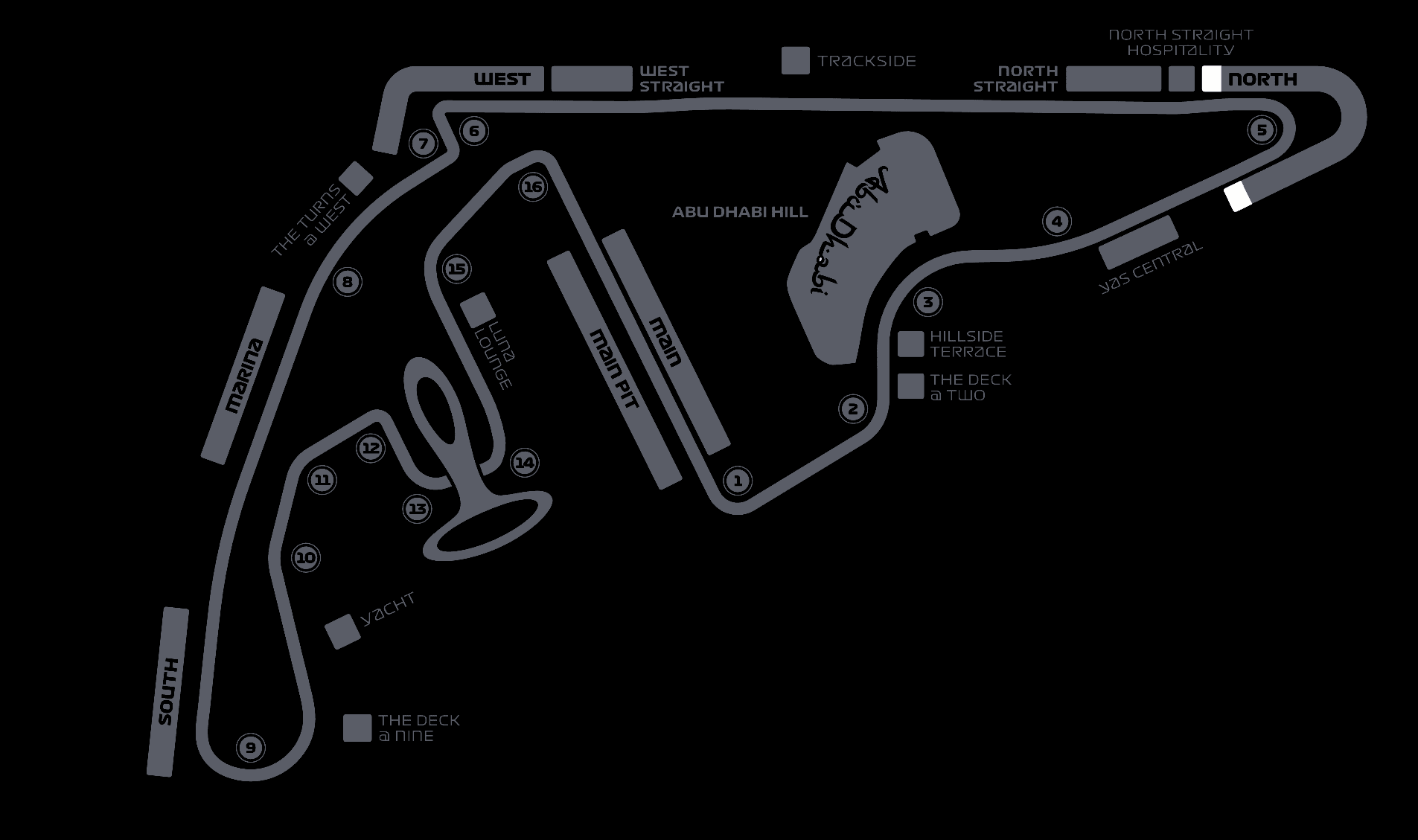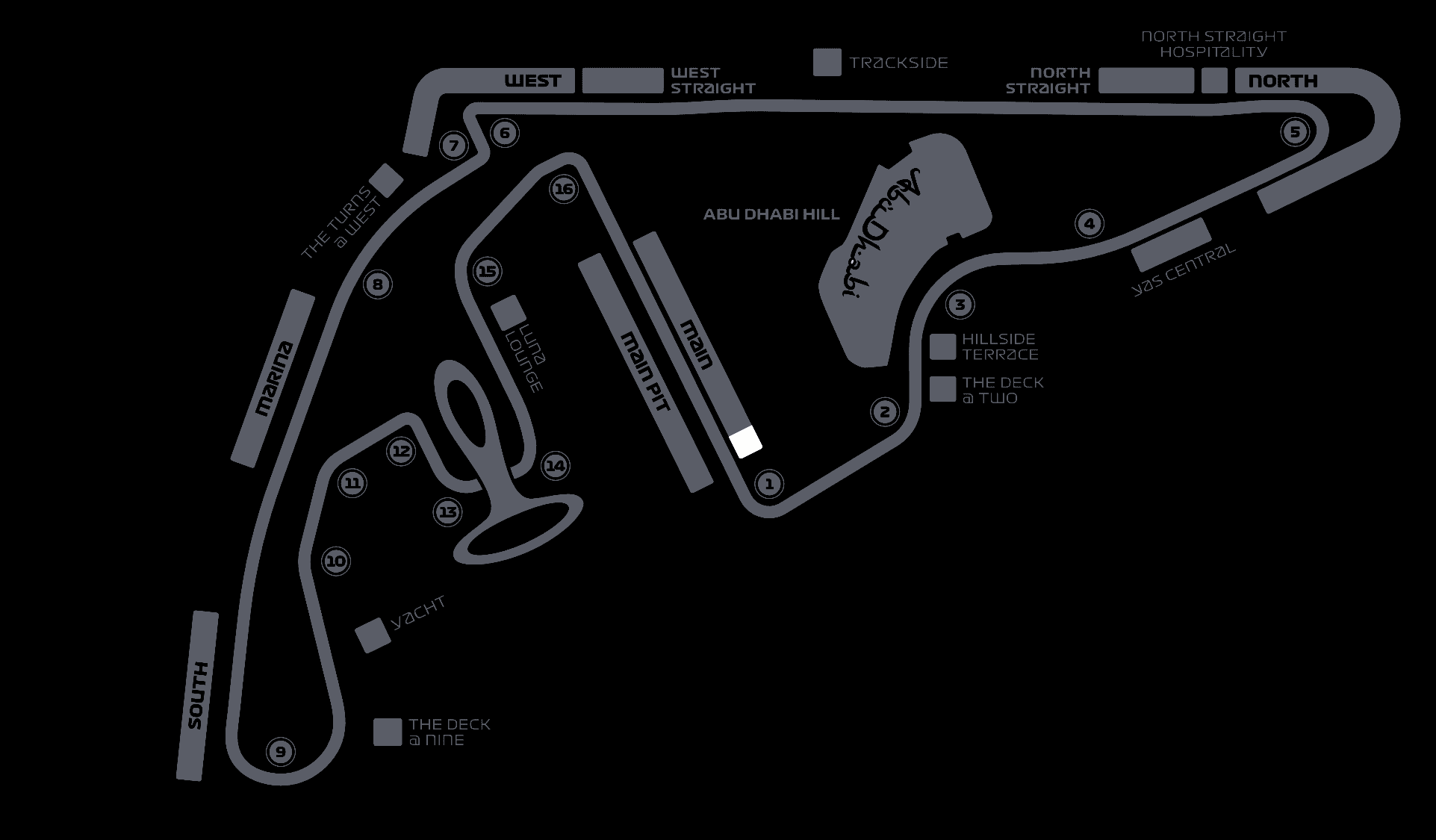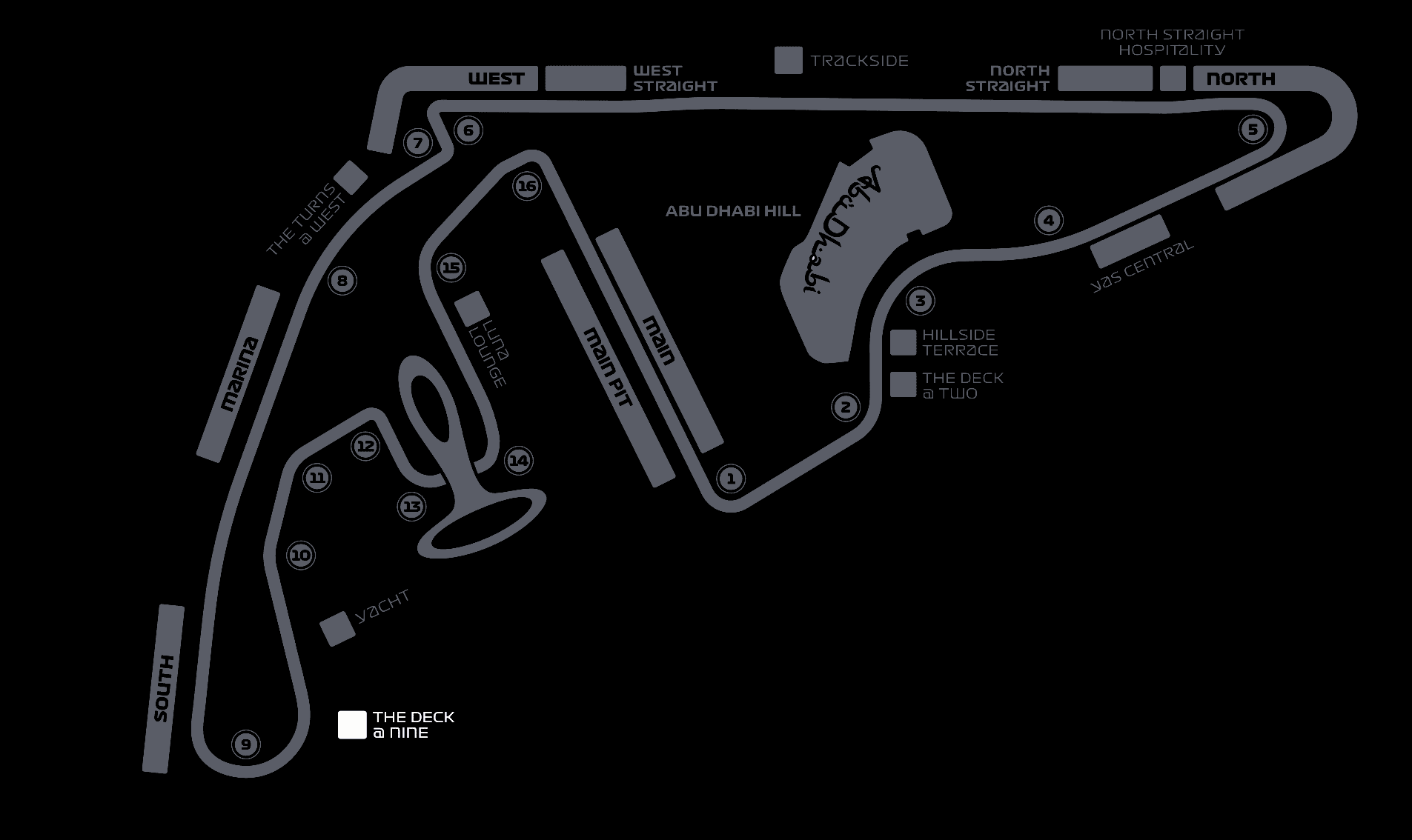 Located in turn 2, the Deck at Two Premium Hospitality lounge offers fantastic track views. The catering in this beautifully set-up lounge is provided by three different five-star restaurants. Enjoy what these top chefs serve with a delightful glass of champagne as you watch the drivers approach from turn 1.