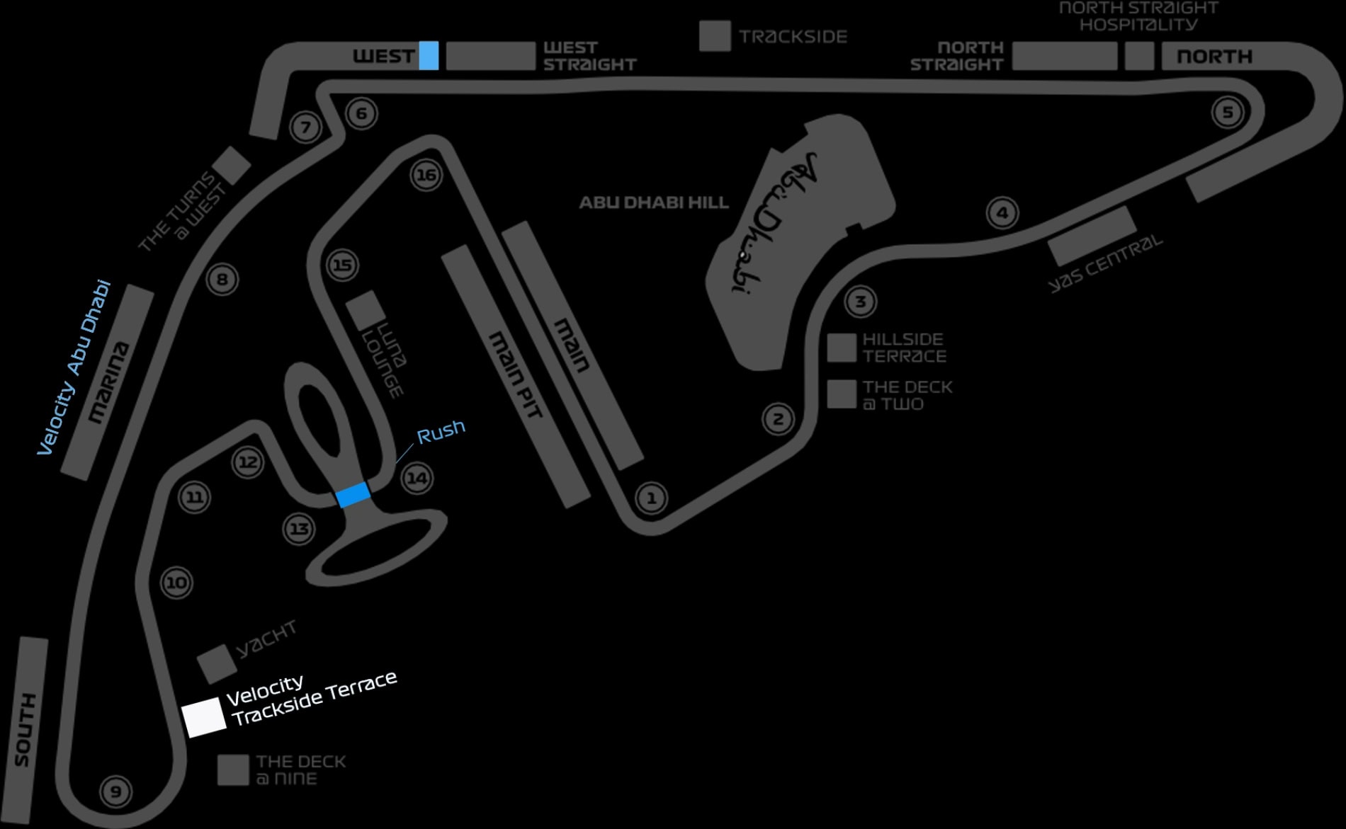 As part of the W-Hotel, the Velocity Skybridge is the only hospitality space located over the circuit. This luxurious club with a terrace combines stunning views with a comfortable lounge. Enjoy delicious dishes prepared by the hotel’s chefs and end the day with access to the evening party.