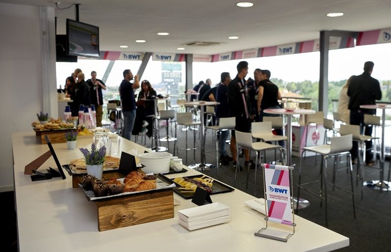 Perfectly situated at the end of the pit exit, you’ll have a view of the start/finish straight, turn 1, and also on the other side, turns 5, 6, and 7. If you choose to stay indoors, all the action can be followed on large Full-HD screens broadcasting the live track action. Click here for more information about the Panorama Village Hospitality package.